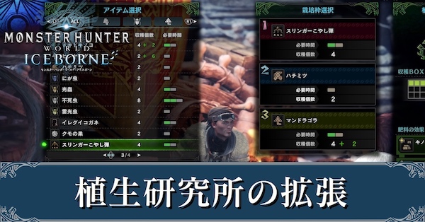 植生研究所の栽培枠 収穫box アイテム 肥料を拡張する解禁条件まとめ モンハンワールド Mhw 攻略 コンシューマゲームファン