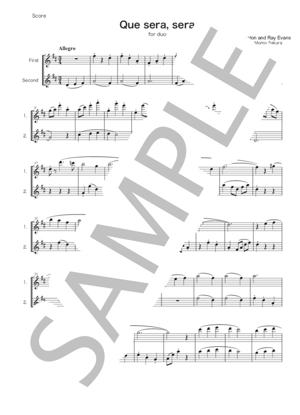 楽譜 Que Sera Sera ケ セラ セラ デュエット ドリス デイ ピアノ ボーカル 中 上級 ぷりんと楽譜