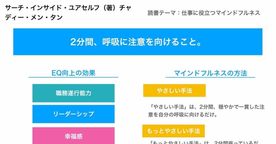 1日1冊 2分間だけ 簡単なマインドフルネス サーチ インサイド ユアセルフ 仕事と人生を飛躍させるグーグルのマインドフルネス実践法 著 チャディー メン タン 小倉 研太 プロマネ X フルリモート Note
